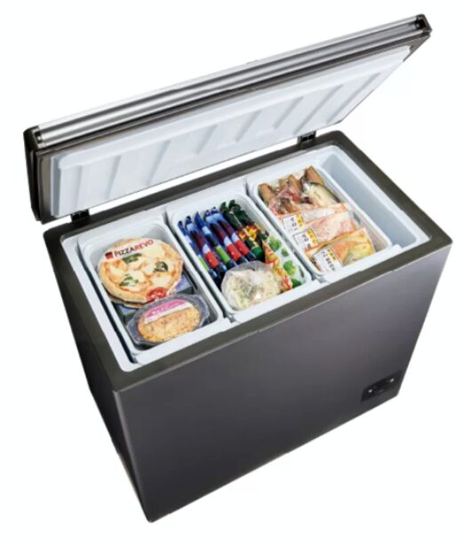 アクアはハイアールグループの日本法人が展開する家電ブランド。日本の住環境や使い方に合わせた製品づくりに力を入れており、冷凍庫は「直冷式」からファン式までラインナップが広く、用途に合わせて選べます。今回のAQFシリーズは上開き・1ドア・ダークシルバーの落ち着いた外観で、庫内は大きな食材も丸ごと入れやすいシンプル構造。冷蔵/冷凍の2モード切替や可動式バスケットなど、毎日の使いやすさに直結する機能が充実しています。
