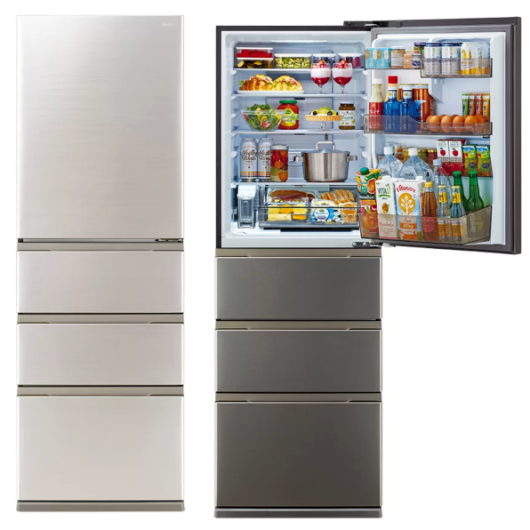 - AQR‑S36A:冷凍室が100Lと広く、引き出しが大きく開くので作り置きや冷凍ストックにぴったり。