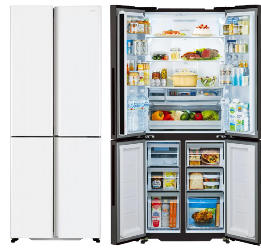 両機種ともクイック冷凍と旬鮮冷凍を備えています。さらにAQUAの資料では「おいシールド冷凍」により霜取り運転時の温度変化を抑え、食材の霜付きやドリップを抑える仕組みが案内されています。冷凍保存の質を大切にしたい方には、ただ容量が大きいだけでなく保存状態にも配慮されているのが魅力です。冷凍食品をよく使うご家庭ほど恩恵を感じやすい仕様です。